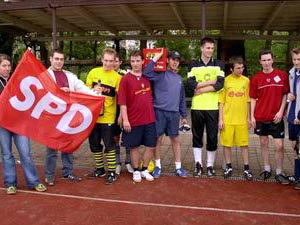 Das Team der Jusos Heilbronn verlor nach zwei deutlichen Niederlagen in den Gruppenspielen auch das Spiel um Platz 5 denkbar knapp mit 2:3. Zwei Tore, von denen eines aufs Konto von Michael Ziaja geht, das andere war nach Vorarbeit von Moritz Eyer ein Eigentor des Gegners. Bemerkenswert bleibt jedoch, dass die Heilbronner Jusos als einziges Team zeitweise quotiert auf dem Platz standen!