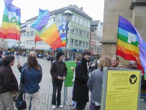 Aus Anlass des ersten Jahrestags des Irak-Kriegs-Beginns organisierte das Heilbronner Friedensbüro einen Infostand auf dem Kiliansplatz. Mit dabei waren SPD, Grüne, GAJ und Jusos, die an Passanten Aktionsflugis verteilten.